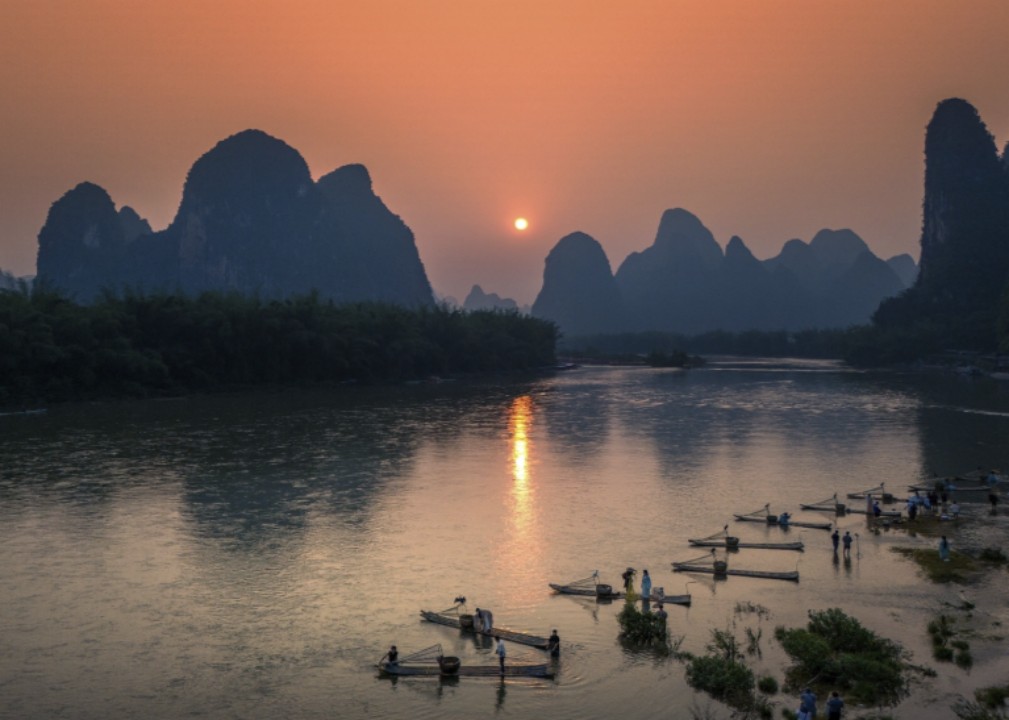 阳朔的山水素有“甲天下”的美誉,春日里,漓江水清澈见底,两岸青山如黛,骑行在十里画廊,或乘竹筏漂流,都能感受到山水间的宁静与美好。